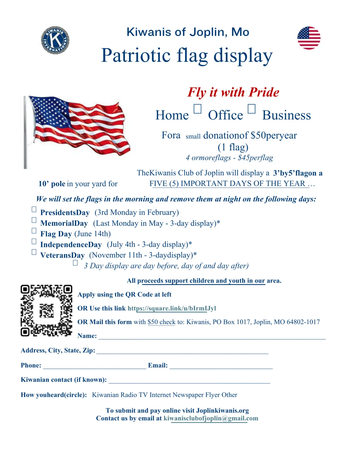 If you wish to be a flag subscriber, fill out this form, and you will be sent to a payment form. We wish to thank you for your support! You may also use this QR code!